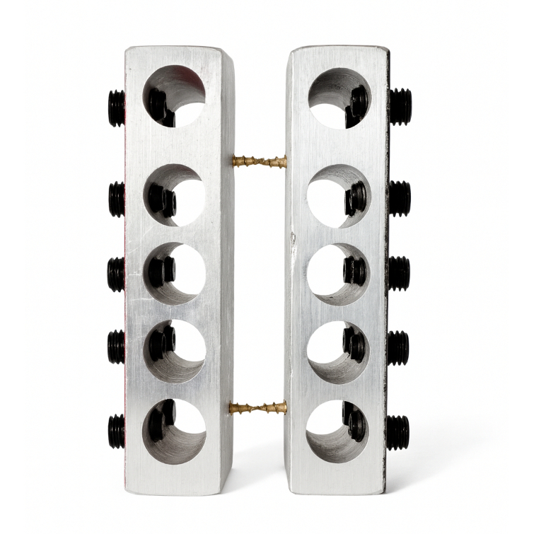 Par de Blocos Distribuidores 6x6 – 12 Vias | Blue Parts Distribuição de energia com mais organização, segurança e confiabilidade para sistemas de alta corrente. O Bloco Distribuidor Blue Parts 6x6 foi desenvolvido para aplicações exigentes, oferecendo conexões firmes, excelente condução elétrica e acabamento robusto. Fabricado em alumínio maciço de alta performance elétrica, garante menor perda de energia e maior durabilidade. Ideal para quem busca um barramento confiável para projetos profissionais. Aplicações • Som automotivo de alta potência • Carros, trailers e motorhome • Bancos de baterias • Sistemas de energia DC e solar off-grid • Embarcações e aterramento DC Características e Especificações Técnicas • Par de blocos distribuidores 6x6 (positivo e negativo) • 12 vias por bloco (24 terminais no par) • Compatível com cabos de 1 mm² até 70 mm² • Alumínio maciço de alta performance elétrica • Condutividade elétrica aproximada: 35 S·m/mm² • Parafusos Allen de grande dimensão para fixação firme • Recessos profundos que protegem a fiação • Alta resistência térmica • Alta resistência à corrosão • Instalação simples e rápida Dimensões Aproximadas • Altura: 20 mm • Profundidade: 38 mm • Comprimento: 105 mm • Peso aproximado: 380 g Conteúdo da Embalagem • 1 Bloco Distribuidor 6x6 – 12 vias Positivo (+) • 1 Bloco Distribuidor 6x6 – 12 vias Negativo (–) • 24 Parafusos Allen M8 x 12 mm Brindes: • 24 terminais 10 mm para fixação dos fios • 1 Chave Allen 4 mm • 4 Parafusos autoatarraxantes para fixação dos blocos Envio, Garantia e Observações • Produto novo • Pronta entrega – envio imediato após a compra • Garantia de 12 meses contra defeitos de fabricação • Imagens meramente ilustrativas • Recomenda-se instalação por profissional capacitado