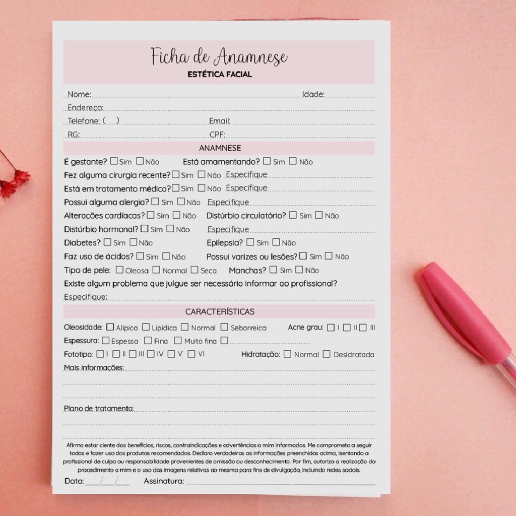 Bloco Ficha Anamnese Avaliação - Estética Facial