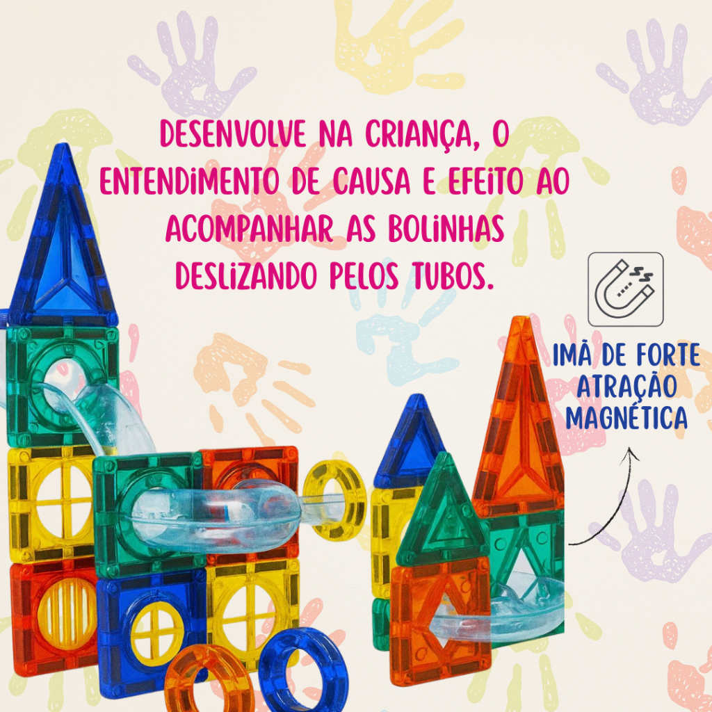 🚀 Blocos de Montar Magnéticos com Tubos 132 ou 111 peças – Brinquedo Educativo STEM O Kit de Blocos de Montar Magnéticos com Pipeline (132 ou 111 peças) é perfeito para estimular a criatividade, a lógica e as habilidades cognitivas das crianças de forma divertida e interativa. Com cores vibrantes e peças fáceis de encaixar, o brinquedo transforma a imaginação em construções incríveis em 3D! ✨ Benefícios para o desenvolvimento infantil ✔ Estimula o raciocínio lógico e a resolução de problemas. ✔ Trabalha a coordenação motora fina e a noção espacial. ✔ Incentiva a imaginação criativa através de infinitas possibilidades de montagem. ✔ Desenvolve o entendimento de causa e efeito ao acompanhar as bolinhas deslizando pelos tubos. ✔ Favorece o trabalho em equipe e a socialização quando usado em grupo. 🧩 Brinquedo STEM – Aprender brincando Este kit faz parte da metodologia STEM (Ciência, Tecnologia, Engenharia e Matemática), que promove o aprendizado por meio da prática e da experimentação. A criança, ao montar os blocos magnéticos e as pistas, exercita: ✔ Ciência: observação e análise de movimento. ✔ Tecnologia: exploração de mecanismos simples. ✔ Engenharia: construção de estruturas sólidas e criativas. ✔ Matemática: noção de formas geométricas, proporções e medidas. 🌈 Características do produto ✔ Disponível em 2 opções: 132 ou 111 peças magnéticas e tubos. ✔ Peças coloridas que despertam a atenção e tornam a experiência mais envolvente. ✔ Sistema de encaixe magnético seguro e de fácil manuseio. ✔ Possibilidade de criar diferentes formas, prédios, pistas e estruturas tridimensionais. ✅ Por que escolher este brinquedo? ✔ Estimula o cognitivo e a criatividade. ✔ Incentiva o aprendizado prático com diversão. ✔ Brinquedo seguro, educativo e com grande apelo visual. ✔ Ótimo para uso individual ou em família. 👉 Um brinquedo completo que une diversão, aprendizado e desenvolvimento cognitivo, ideal para presentear e acompanhar o crescimento da criança.
