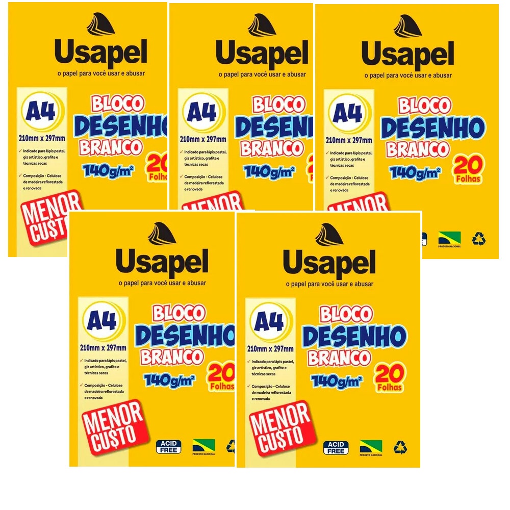 BLOCO PARA DESENHO A4 BRANCO KIT 5UN 140G C/ 20F - USAPEL