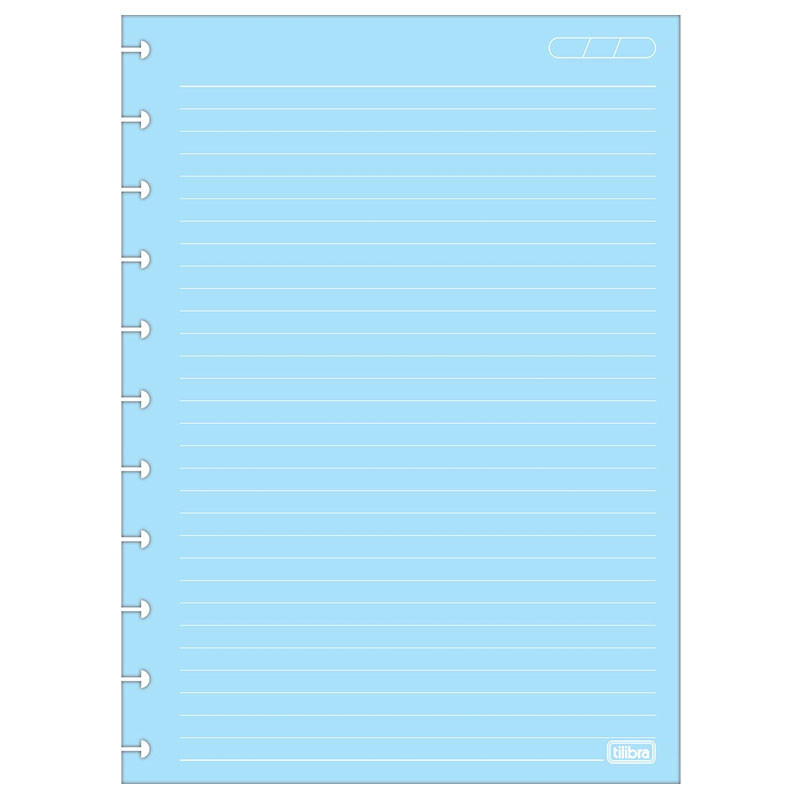 O Refil para Tilidisco Universitário Folhas Coloridas Pauta Branca 50 Folhas tem gramatura de 90 g/m² para facilitar o encaixe dos discos e oferecer mais possibilidades de escrita com diversos tipos de canetas. O produto possui furação para 11 discos. Detalhes: - Folhas: coloridas e pautadas - Formato: 200mm x 275mm - Gramatura: 90 g/m² - Número de folhas: 50 folhas.
