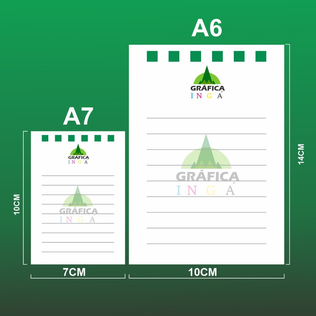 BLOCOS DE RASCUNHO COM 50 FOLHAS COM CAPA PERSONALIZADA Logo após a compra envie seu logo imediatamente no chat. - FORMATO : A7 - 10 X 7 CM OU A6 - 10X14CM - CAPA EM PAPAL FOTOGRÁFICO 260G CONTRA CAPA EM PAPEL OFFSET 240G (ENCORPADO) - MIOLO EM OFF SET 75 GRAMAS (SULFITE BRANCO) - PAUTADO (COM LINHAS) E SEU LOGO - IMPRESSÃO SÓ DE UM LADO DA FOLHA - BLOCADO COM WIRE-O BRANCO /BRANCO 7/8 (TIPO DUPLO ESPIRAL) - 50 FOLHAS POR BLOCO MAIS CAPA E CONTRA CAPA IDEAL PARA ARTESANATOS , COMANDAS EM BARES E RESTAURANTE , ESCRITÓRIOS E RESIDÊNCIAS , LEMBRANCINHAS DE ANIVERSÁRIOS E CASAMENTOS . ** Todos os nossos produtos seguem com nota fiscal e garantia contra defeitos de fabricação. Nossos produtos serão despachados em até 3 dias úteis depois da confirmação do pagamento. Esteja ciente de que eventualmente sua entrega poderá ser reprogramada ou até mesmo precisar ser retirada em agência próxima de seu endereço.