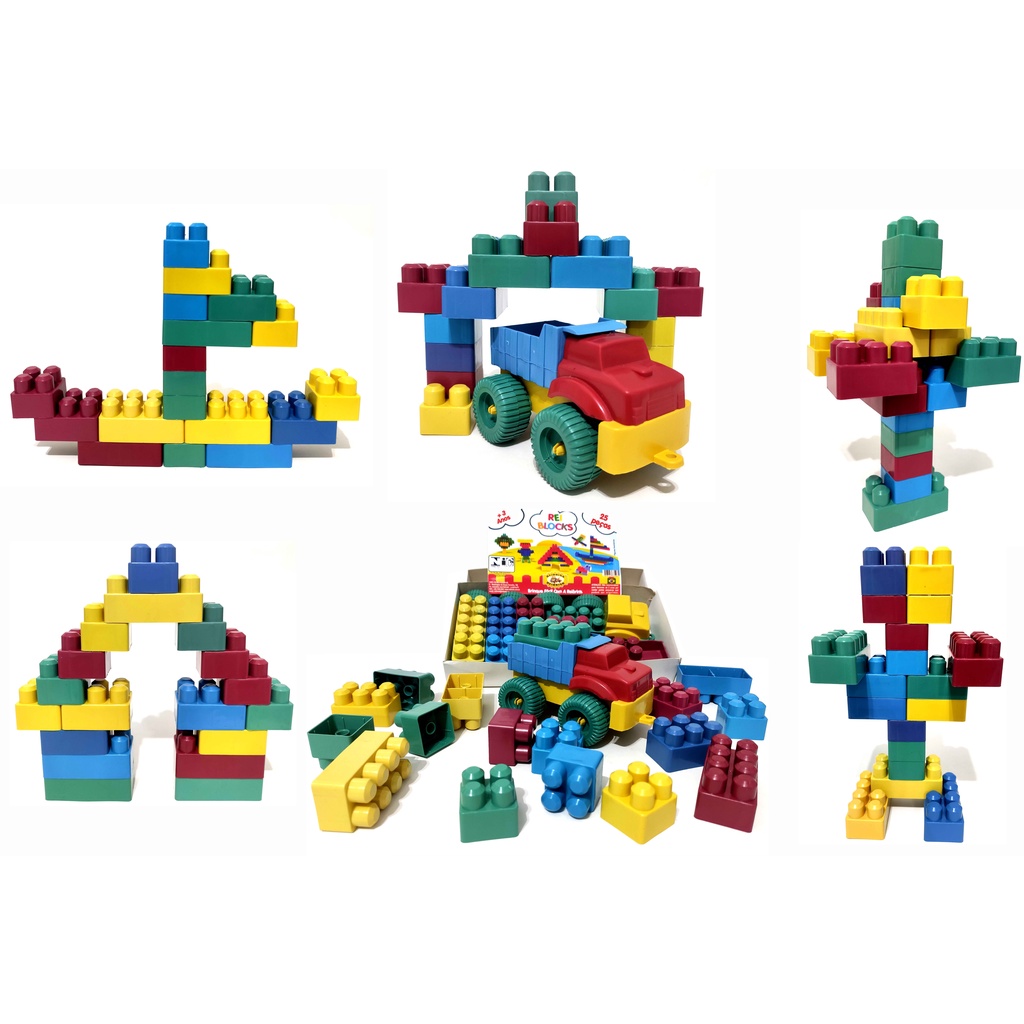 BLOCOS DE MONTAR SÃO BLOCOS EDUCATIVOS QUE ESTIMULA A CRIATIVIDADE, COORDENAÇÃO E SÃO MUITO DIVERTIDOS. DESENVOLVIDO PARA OBTER UM ENCAIXE PERFEITO E FÁCIL PARA MONTAR E DESMONTAR COM PINOS GRANDES E PEÇAS COM EXCELENTE TAMANHO DANDO MAIS SEGURANÇA NA HORA DA BRINCADEIRA. POSSUI TAMBÉM UM ÓTIMO ACABAMENTO E SEM QUINAS VIVAS. IDEAL PARA BRINCAR EM FAMÍLIA, PARA SALA DE AULA E TAMBÉM PARA DAR DE LEMBRANÇA EM FESTA DE ANIVERSÁRIO PODENDO PERSONALIZAR. CONTÉM 01 CAMINHAOZINHO DE MONTAR COMPLETO POR EMBALAGEM + PEÇAS CONTÉM NA EMBALAGEM : 30 PEÇAS PARA MONTAR INCLUSO RODAS MATERIAL : PLÁSTICO PRODUTO ATÓXICO MARCA: REIBRINK MEDIDAS APROXIMADAS: PEÇAS GRANDE (8 PINOS) : 6 CM X 3 CM X 2,7 CM PEÇAS MÉDIAS (6 PINOS): 4,3 CM X 3 CM X 2,7 CM PEÇAS PEQUENAS (4 PINOS): 3 CM X 3 CM X 2,7 CM CHASSI : 13 CM X 6,5 CM X 3,2 CM GABINE : 4,7 CM X 5,2 CM X 3,0 CM CAÇAMBA: 7,5 CM X 4,1 CM X 3,4 CM PESO APROXIMADO: 0,5 KG PRODUTO A PRONTA ENTREGA RECOMENDADO A PARTIR DE 36 MESES PRODUTO CERTIFICADO PELO INMETRO
