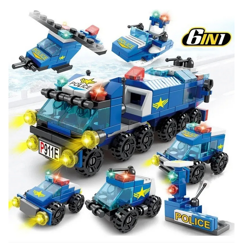 Blocos De Montar 6 em 1 Construção Bricks (BOMBEIRO, POLICIA E GUINDASTE)