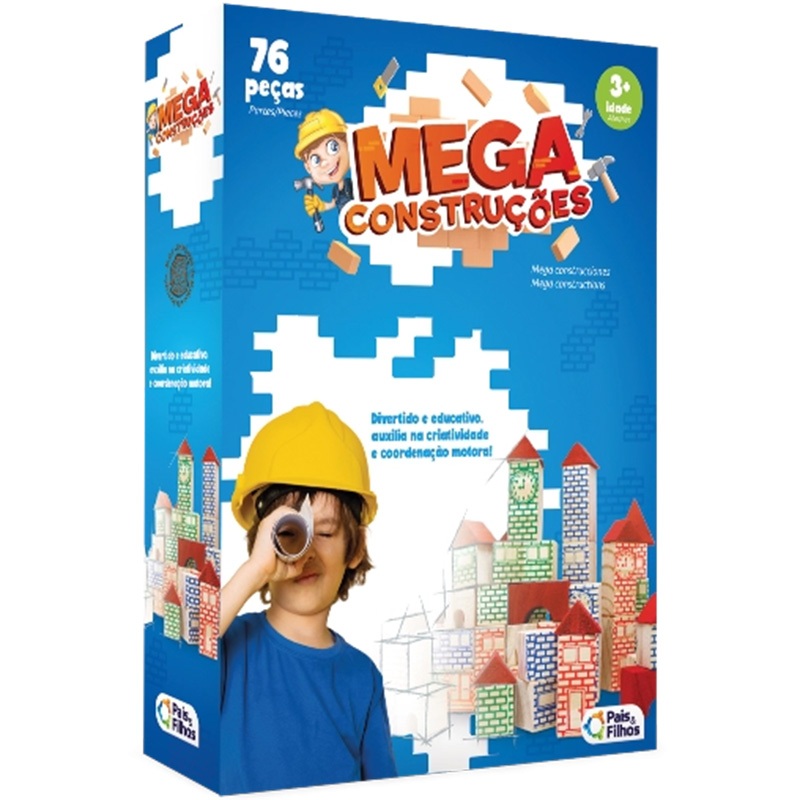 Blocos de Montar de Madeira Mega Construções 75 Peças - Pais e Filhos 7395