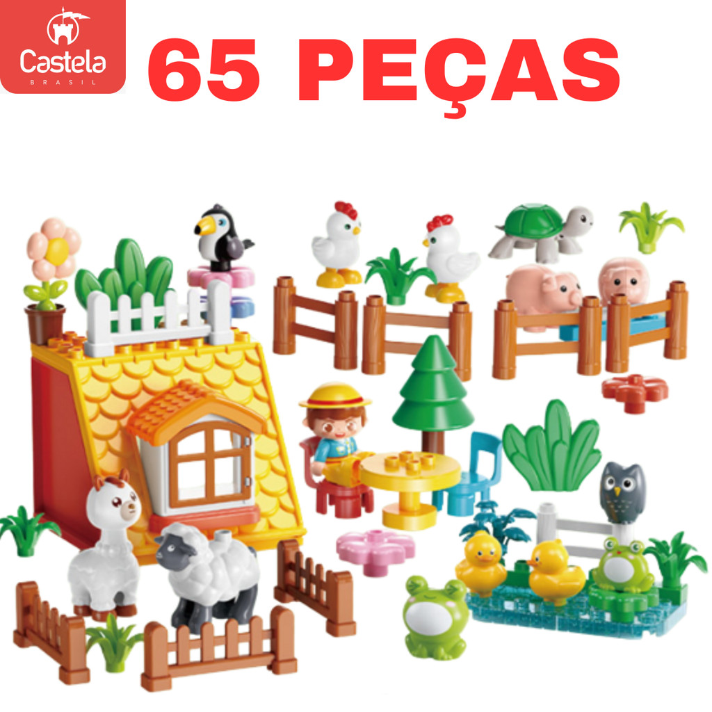 Blocos de Montar Pista Animais da Fazenda 65 Peças - Castela