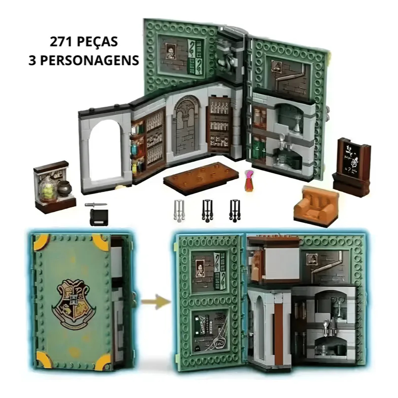Reviva a magia de Hogwarts com esses kits de blocos de montar inspirados nas salas mais icônicas do mundo bruxo. Cada modelo acompanha personagens relacionados e apresenta rico nível de detalhes, acabamento impecável e peças compatíveis com principais marcas do mercado. Modelos Disponíveis (6 Salas Colecionáveis) Sala de Transfiguração Personagens incluídos: Professora McGonagall + 2 aluno(s) Ambiente clássico com mesa, acessórios de magia e elementos da aula. Sala de Feitiços Personagens incluídos: Professor Flitwick + 2 aluno(s) Inclui livros mágicos, varinhas e elementos decorativos inspirados nas aulas de encantamentos. Sala de Defesa Contra as Artes das Trevas Personagens incluídos: Professor (inspirado na turma clássica) + 2 aluno(s) Com armários, criaturas e objetos para prática defensiva. Sala de Herbologia Personagens incluídos: Professora Sprout + 2 aluno(s) Inclui vasos, plantas mágicas e acessórios icônicos. Sala de Adivinhação Personagens incluídos: Professora Trelawney + 2 aluno(s) Contém mesa de leitura, bolas de cristal e decoração mística. Sala de Poções Personagens incluídos: Professor Snape + 2 aluno(s) Com caldeirões, frascos, ingredientes e cenários incríveis. Informações Importantes Produto réplica, não oficial. Vai desmontado, dentro de embalagem simples. Não acompanha caixa de varejo