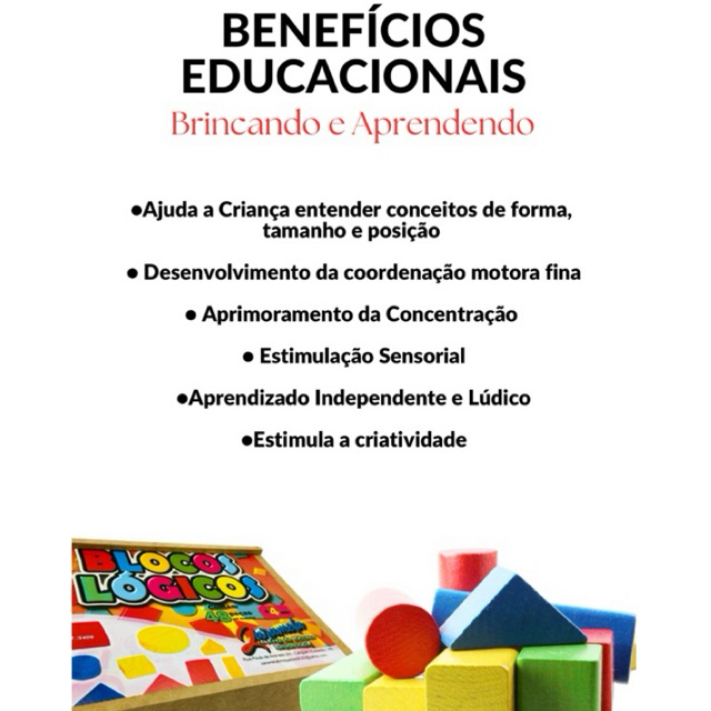 | Blocos Lógicos Brinquedo Educativo Pedagógico Lúdico Escolar Formas... este produto | R$ 46,99 | — | 4.9/5 | 10 |