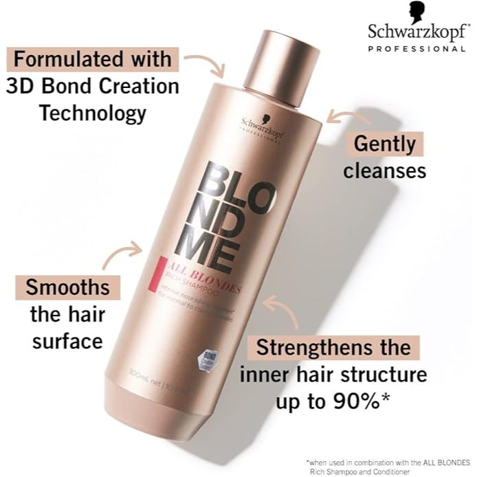 A linha BlondMe Todos os Loiros Enriquecida possui em sua tecnologia Complexo de Proteínas de Caxemira, que é um ingrediente conhecido pelas suas propriedades poderosas de retenção da hidratação que ajudam a condicionar as fibras capilares intensamente. Penetra nas cutículas, ajudando a prevenir a quebra do cabelo e as pontas espigadas. Deixa o cabelo mais nutrido e até 90% mais forte, quando combinado o uso do Shampoo com o Condicionador, ou Shampoo com a Máscara.