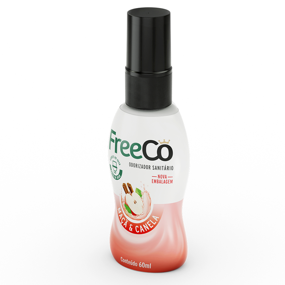 Somos a Loja Oficial FreeBrands! FreeCô é 1º bloqueador de odores sanitários do Brasil, eliminando de forma definitiva o mau cheiro do nº2 e também o constrangimento em utilizar o banheiro. Esta versão com fragrância de Maçã e Canela de 60 ml é ideal para deixar em banheiros e lavabos. Na sua casa ou no trabalho. FreeCô veio para acabar com cheirão e com o medo do Nº 2. Afinal de contas, é pioneiro no seu segmento. Não é aerossol, é um produto natural feito com princípios ativos de óleos essenciais fitoterápicos, portanto, não faz mal à saúde nem ao meio ambiente. Portátil, pode ser levado na bolsa, no bolso ou onde você quiser. O segredo do sucesso é que ele elimina de forma definitiva o constrangimento em utilizar o banheiro. Sua apresentação em frascos com 60 ml é ideal para levar no bolso, na bolsa, nécessaire, pasta ou mochila. FreeCô chegou para eliminar um dos principais motivos de bullying, constrangimentos e humilhações no trabalho, na escola, em casa, nos relacionamentos afetivos ou entre os amigos. FreeCô bloqueia o cheiro do sanitário quando utilizado de forma correta. Mas como funciona? FreeCô cria uma capa na superfície da água que neutraliza o mau cheiro antes mesmo de ser percebido. INSTRUÇÕES DE USO: - Posicione o frasco na altura da tampa do sanitário com o borrifador voltado para a água. - Borrife 5 vezes para criar uma barreira protetora de óleos naturais. - Desfrute do aroma agradável do FreeCô enquanto os odores indesejados desaparecem. Saiba como NÃO usar FreeCô: - Não usar FreeCô depois de fazer o Nº 2 - Não usar FreeCô borrifando no ar - Não usar FreeCô de qualquer outra forma que não seja na água do vaso sanitário BENEFÍCIOS Tecnologia Avançada: Fórmula cientificamente desenvolvida para neutralizar odores antes mesmo que eles se espalhem pelo ar. Fácil de Usar: Com instruções simples, basta borrifar 5 vezes o FreeCô na água antes de usar o vaso, criando uma barreira protetora natural. Portátil: O frasco compacto de 60 ml é conveniente para transportar e manter em qualquer banheiro. Econômico: Com apenas algumas borrifadas, o FreeCô oferece resultados poderosos, tornando-o econômico e de longa duração, até 100 usos (frasco de 60 mL). Bem-Estar Garantido: Livre-se das preocupações com odores constrangedores e desfrute de um banheiro sempre fresco e agradável. FreeCô possui o selo vegano da Sociedade Vegetariana Brasileira após passar por todas as etapas que comprovam que o produto não possui ingredientes de origem animal e muito menos realiza teste em animais. Validade de 36 meses após a fabricação, todos os nossos frascos foram produzidos recentemente. Experimente a inovação em bloqueio de odores com o Desodorizador Sanitário FreeCô. Garanta frescor e conforto para seu banheiro com a refrescante fragrância de Maçã e Canela. Borrife, use e sinta a diferença!