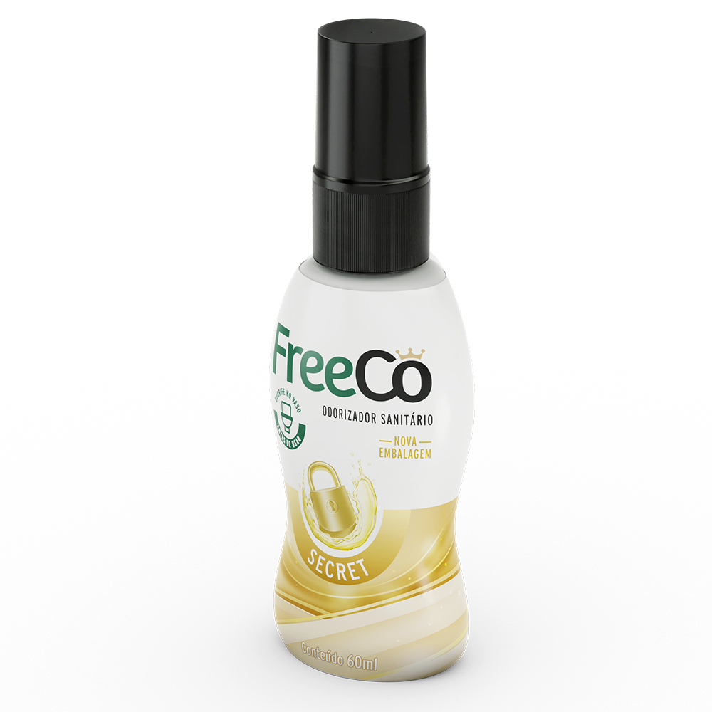 Somos a Loja Oficial FreeBrands! FreeCô é 1º bloqueador de odores sanitários do Brasil, eliminando de forma definitiva o mau cheiro do nº2 e também o constrangimento em utilizar o banheiro. Esta versão com fragrância de SECRET (perfume premium) de 60 ml é ideal para deixar em banheiros e lavabos. Na sua casa ou no trabalho. FreeCô veio para acabar com cheirão e com o medo do Nº 2. Afinal de contas, é pioneiro no seu segmento. Não é aerossol, é um produto natural feito com princípios ativos de óleos essenciais fitoterápicos, portanto, não faz mal à saúde nem ao meio ambiente. Portátil, pode ser levado na bolsa, no bolso ou onde você quiser. O segredo do sucesso é que ele elimina de forma definitiva o constrangimento em utilizar o banheiro. Sua apresentação em frascos com 60 ml é ideal para levar no bolso, na bolsa, nécessaire, pasta ou mochila. FreeCô chegou para eliminar um dos principais motivos de bullying, constrangimentos e humilhações no trabalho, na escola, em casa, nos relacionamentos afetivos ou entre os amigos. FreeCô bloqueia o cheiro do sanitário quando utilizado de forma correta. Mas como funciona? FreeCô cria uma capa na superfície da água que neutraliza o mau cheiro antes mesmo de ser percebido. INSTRUÇÕES DE USO: - Posicione o frasco na altura da tampa do sanitário com o borrifador voltado para a água. - Borrife 5 vezes para criar uma barreira protetora de óleos naturais. - Desfrute do aroma agradável do FreeCô enquanto os odores indesejados desaparecem. Saiba como NÃO usar FreeCô: - Não usar FreeCô depois de fazer o Nº 2 - Não usar FreeCô borrifando no ar - Não usar FreeCô de qualquer outra forma que não seja na água do vaso sanitário BENEFÍCIOS Tecnologia Avançada: Fórmula cientificamente desenvolvida para neutralizar odores antes mesmo que eles se espalhem pelo ar. Fácil de Usar: Com instruções simples, basta borrifar 5 vezes o FreeCô na água antes de usar o vaso, criando uma barreira protetora natural. Portátil: O frasco compacto de 60 ml é conveniente para transportar e manter em qualquer banheiro. Econômico: Com apenas algumas borrifadas, o FreeCô oferece resultados poderosos, tornando-o econômico e de longa duração, até 100 usos (frasco de 60 mL). Bem-Estar Garantido: Livre-se das preocupações com odores constrangedores e desfrute de um banheiro sempre fresco e agradável. FreeCô possui o selo vegano da Sociedade Vegetariana Brasileira após passar por todas as etapas que comprovam que o produto não possui ingredientes de origem animal e muito menos realiza teste em animais. Validade de 36 meses após a fabricação, todos os nossos frascos foram produzidos recentemente. Experimente a inovação em bloqueio de odores com o Desodorizador Sanitário FreeCô. Garanta frescor e conforto para seu banheiro com a refrescante fragrância de SECRET (perfume premium). Borrife, use e sinta a diferença!