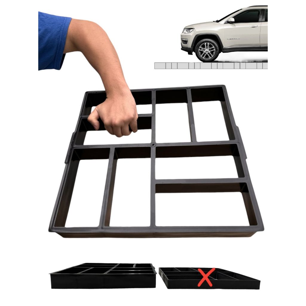 FORMA EASY PISDO GARAGEM: A ÚNICA PARA GARAGENS DO BRASIL! A ÚNICA projetada para aguentar VEÍCULOS, Automóveis, Carros, Caminhonetes! Faça você mesmo! Nossa forma acompanha manual de instruções, e é super fácil de ser usada! Além de decorar seu ambiente, você se diverte muito fazendo e criando suas próprias ideias de decoração! Ficha Técnica - 1 Forma Bloquete - Tamanho de Bloco Padrão - FEITA PARA AGUENTAR VEÍCULOS / CARROS - Tamanho 40x40x6cm - Feita Totalmente em PP - Alta DURABILIDADE E RESISTENCIA - Fácil Utilização - Anti - Corrosiva - Super Resistente - Feita totalmente no Brasil - Acompanha Manual de instruções - Marca Registrada, a Original EASY PISO PERGUNTAS FREQUENTES 1) É fácil a Utilização? R: Sim, é muito fácil! Você mesmo pode fazer! Tanto Moldando as pedras na forma e retirando-as, criando assim o caminho de pedras, quanto usando para marcar um contra piso e fazer Desenhos nele. Muito Fácil e Prático! 2) Posso usar como Carimbo? R: Pode sim, com certeza! Basta apertar a forma direto em cima da massa ainda mole, afundando o molde na mesma. Funciona Super bem! 3) O que uso de cimento, areia e pedra? R: O Traço que Sugerimos é de 4 latas de areia, 3 latas de pedrisco e 1 lata de cimento. Adicionar água na medida semelhante ao contra piso (um pouco mais de água). 4) Quanto tempo preciso esperar para desmoldar após encher o molde de concreto? R: Você pode desformar no MESMO INSTANTE, que as pedras ficarão certinhas! Só não adicione água demais para o concreto não ficar muito mole. 5) Posso Usar para fazer calçadas e passeios onde passarão pessoas? R: Sim, pode sim! Aguenta muitíssimo bem! Aliás, é projetado exatamente para isso! 6) Posso usar para fazer Passagem de carro? R:SIM! É A ÚNICA NO BRASIL PROJETADA PARA ISSO! 7) Posso usar na Parede também? R: Pode sim! Tanto Rebocando em cima da forma quanto Marcando na Parede! 8) Qual a durabilidade do Molde? R: A validade é Indeterminada, cuidando direitinho você terá o molde por muito e muitos anos! 9) Posso Usar mais de uma para aumentar o rendimento? R: Sim, pode! Elas se encaixam uma na outra já para isso mesmo! 10) COMO É FEITO O ENVIO? R: O Envio é o MAIS RÁPIDO do BRASIL!! Envios sempre no MESMO DIA ou em até 24hs Úteis e com a MAIOR AGILIDADE para chegar SUPER RÁPIDO Para você! 11) Vem Nota Fiscal? R: Sim!!! Sempre com a Nota Fiscal!!! Além disso sua nota fica salva também clicando em "Detalhes da compra" e você pode Acessá-la quando quiser!