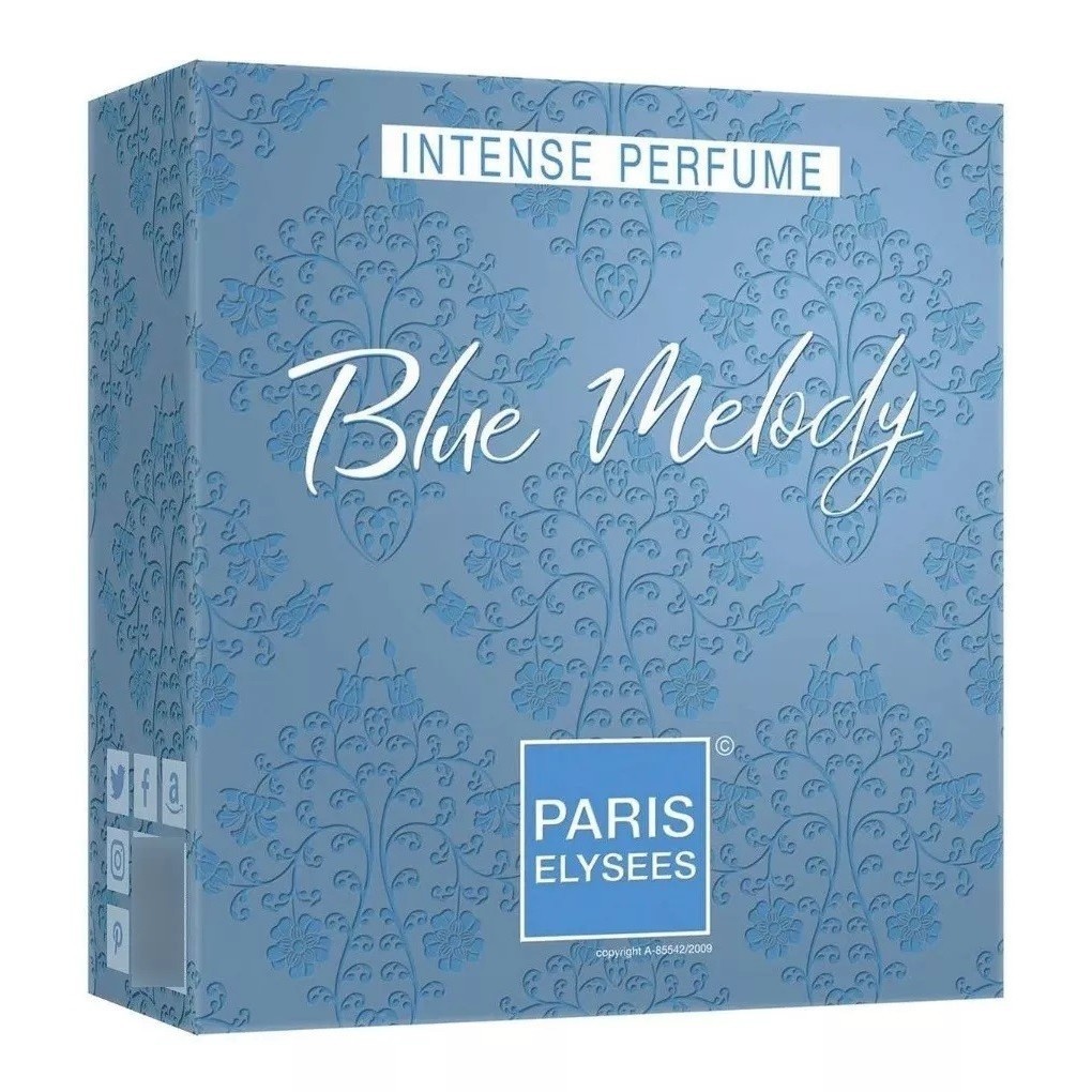 Blue Melody da Paris Elysees. Para todas as mulheres que gostam de ter personalidade. Todas as que desejam estar sempre perfumadas, elegantes e apresentáveis. Feito para você usar onde e como quiser. O perfume da mulher casual chique que vive a vida moderna e exala leveza e alegria por onde passa, sem deixar de lado a naturalidade feminina que encanta e surpreende! Família Olfativa: Cítrico e Amadeirado Notas de Cabeça: Limão, Lima e Maçã Notas de Coração: Jasmim, Fresca, Óleo de Casca de Canela e Rosa Notas de Base: Madeira de Cedro, Âmbar e Benjoim Ocasião sugerida: Ideal para curtir dias e noites quentes e descontraídos, uma fragrância leve, refinada e marcante para momentos casuais de alto astral. Blue Melody Paris Elysees