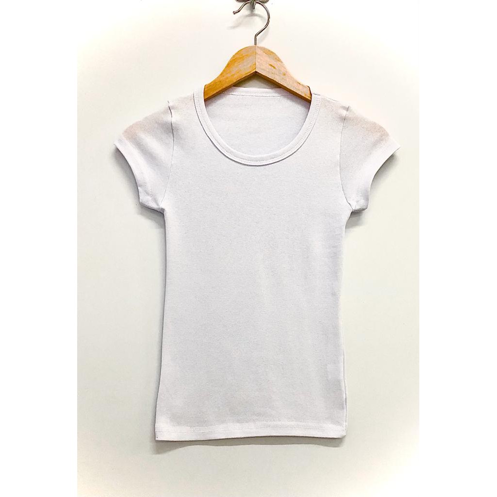 Blusa baby look feminina BRANCA 96% algodão 4% lycra.