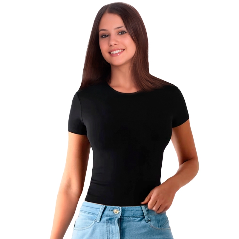 Blusa Baby Look Feminina Manga Curta Slim Fit Estilo Baby Tee