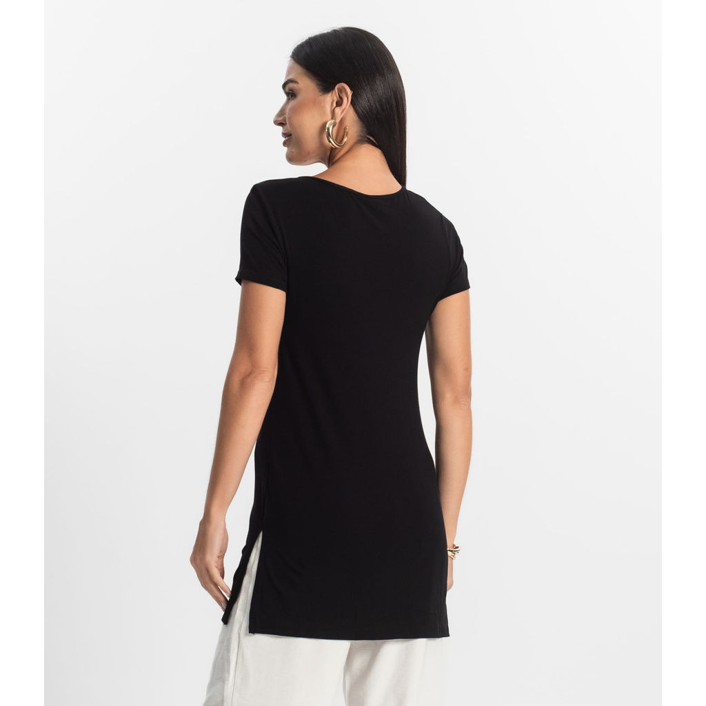 Blusa Básica Alongada Feminina Rovitex Preto