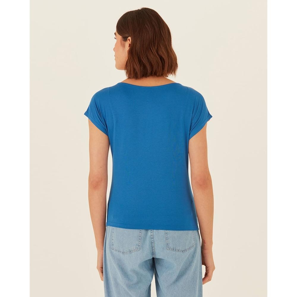 Blusa Básica Feminina Decote Canoa Em Viscose Stretch