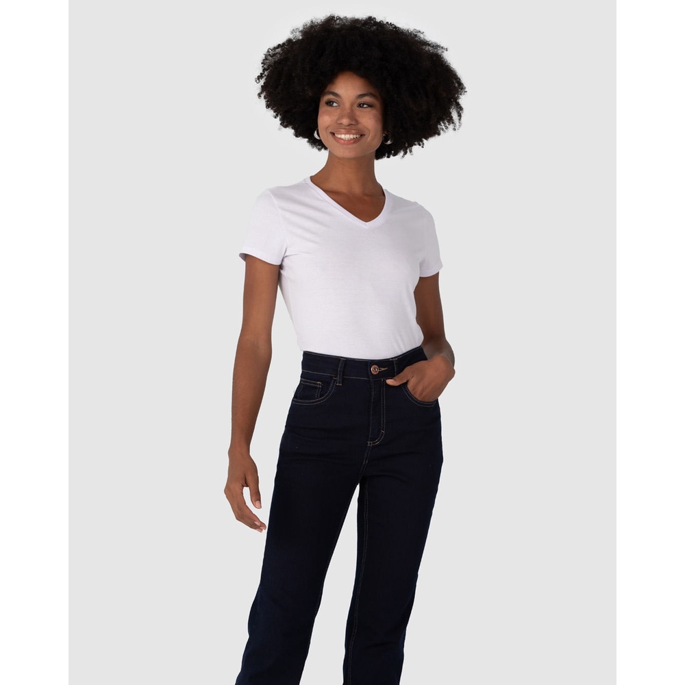 Blusa Básica Feminina Decote V Em Algodão
