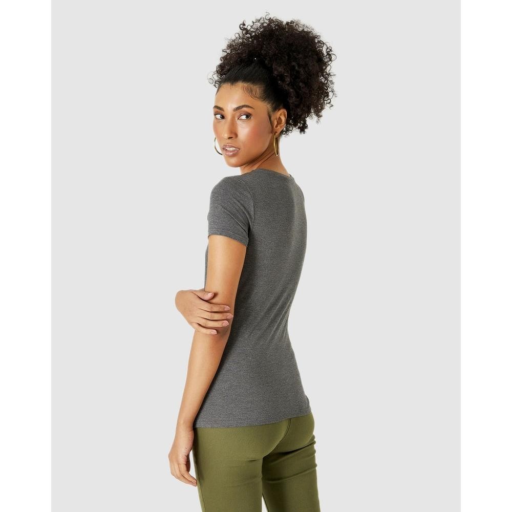 Blusa Básica Feminina Decote V Em Viscose Stretch