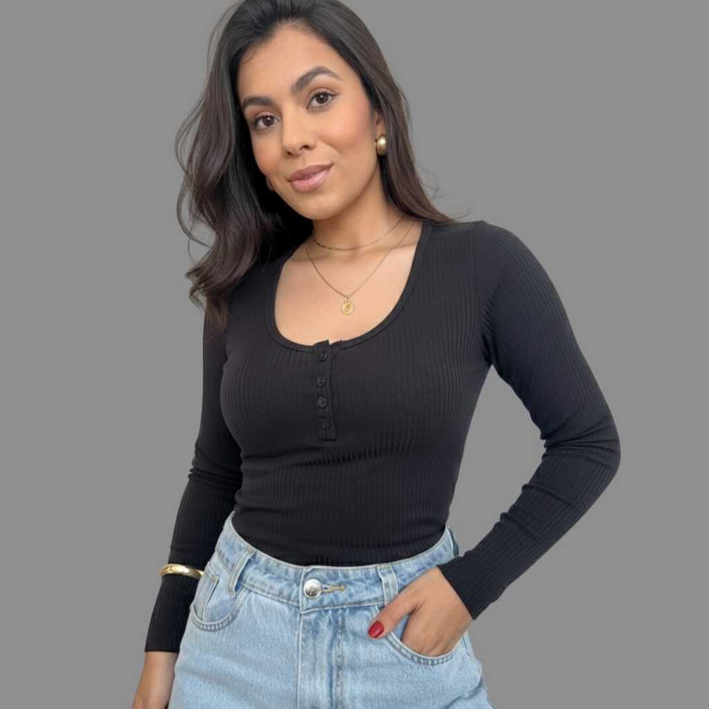 ✨ Blusa Feminina Canelada com Botões ✅ Tecido canelado macio e de ótima qualidade ✅ Modelo ajustado ao corpo ✅ Manga longa ✅ Decote redondo com botões frontais ✅ Super versátil – ideal para looks casuais ou mais arrumados ✅ Combina com jeans, saias e peças de alfaiataria ✅ Tamanhos disponíveis: P, M, G, GG P veste 36 38 M vest 38/40 G veste 42/44 GG veste 44/46