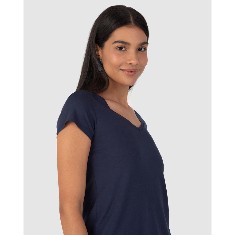 Blusa feminina feita em tecido de viscose stretch conforto. A blusa Mullet tem o seu diferencial por ter a parte traseira mais longo do que a frontal. Também apresentando decote V, mangas curtas e modelagem levemente solta ao corpo, ela foi feita em malha com stretch que possui viscose proveniente de reflorestamento em sua composição, permitindo conforto e frescor. É Uma malha queridinha por aqui e sempre está presente nas nossas coleções, sendo uma peça atemporal e versátil, podendo ser usada de muitas formas! Blusa Mullet Decote V Mangas Curtas Feita em Malha de Viscose Stretch Situação de Uso: Casual e Dia a Dia
