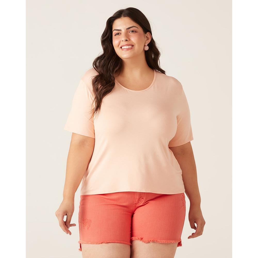 Blusa Básica Feminina Plus Size Decote Redondo Em Viscolinho Stretch