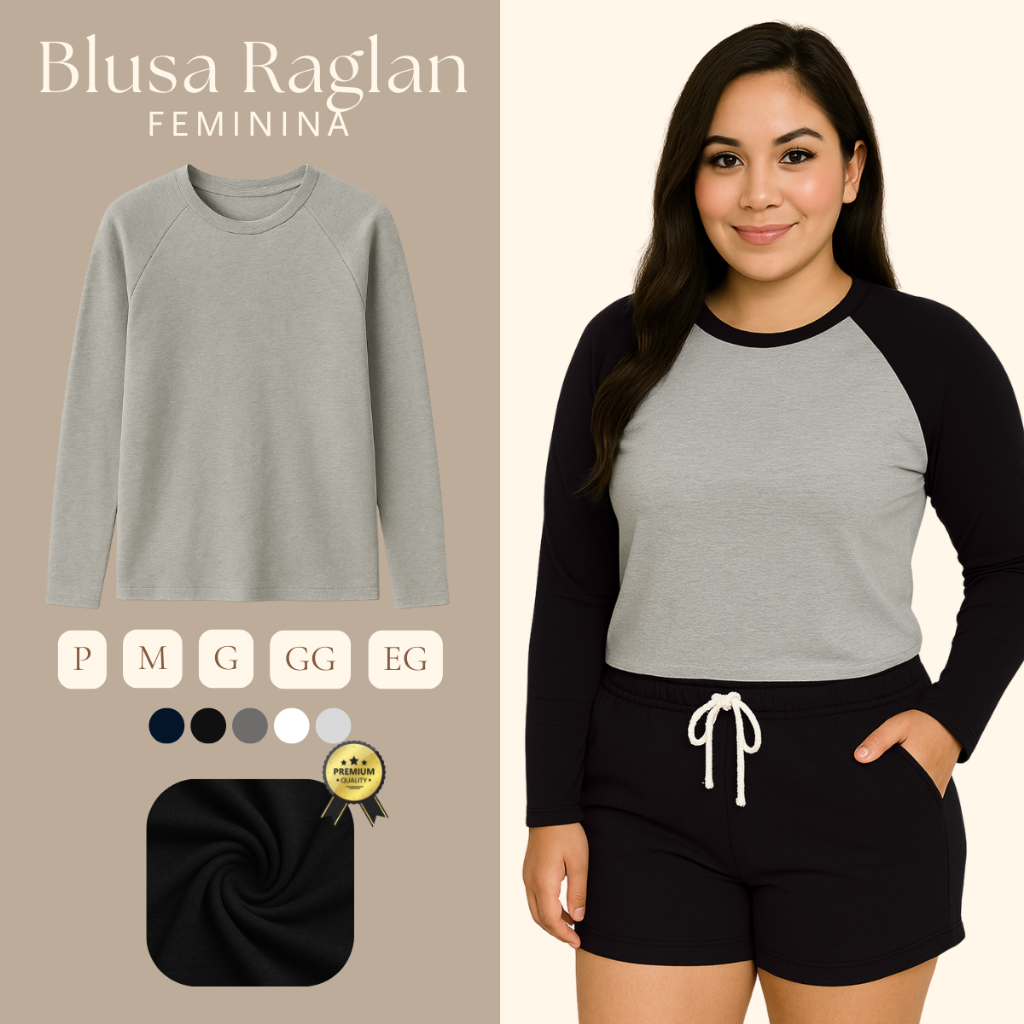 Blusa Básica Manga Longa Feminina Camiseta Raglan Manga Longa Malha Tecido Macio