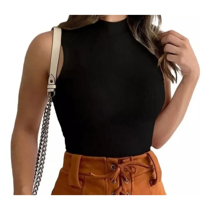 Blusa Blusinha Feminina Regata Gola Alta Sem Bojo Tendência Moda Lançamento Multiuso Elasticidade Promoção