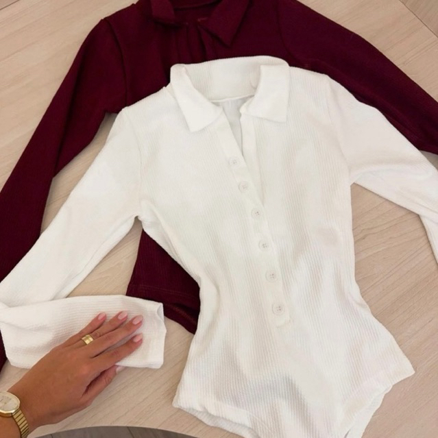 Bory feminina canelada de manga longa, com botões frontais e gola polo que trazem um toque elegante e moderno ao look. O tecido ajusta ao corpo valorizando a silhueta, garantindo conforto e estilo ao mesmo tempo. Perfeita para compor looks casuais ou mais sofisticados. • Tecido anarruga Canelado ( 90% elastano) • Manga longa • Fechamento com botões • Modelagem que valoriza o corpo TAMANHO ÚNICO 36 ao 42 P e G