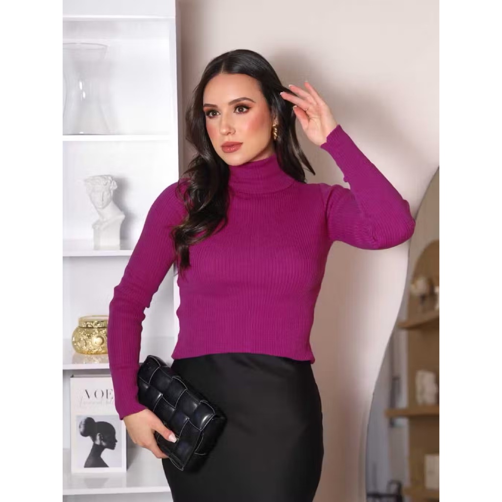 Blusa Cacharrel Canelada Feminina Segunda Pele Tricot Básica Gola Alta Moda Inverno