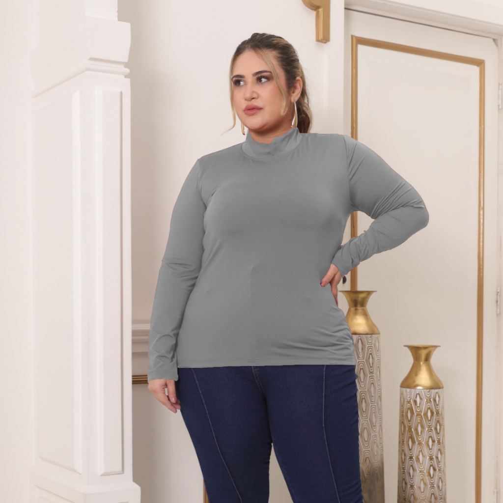 Blusa Cacharrel Térmica Feminina Plus Size Gola Dupla Manga Longa Lisa Peluciada Outono Inverno