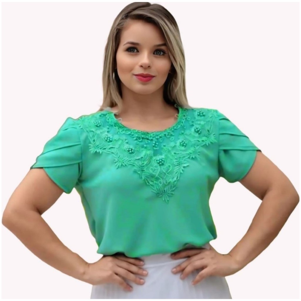 Blusa Camisa Rosa Claro Rosê Detalhe em Pérolas Pedrinha Renda Social Moda Evangélica Social Congresso Igreja Fardamento