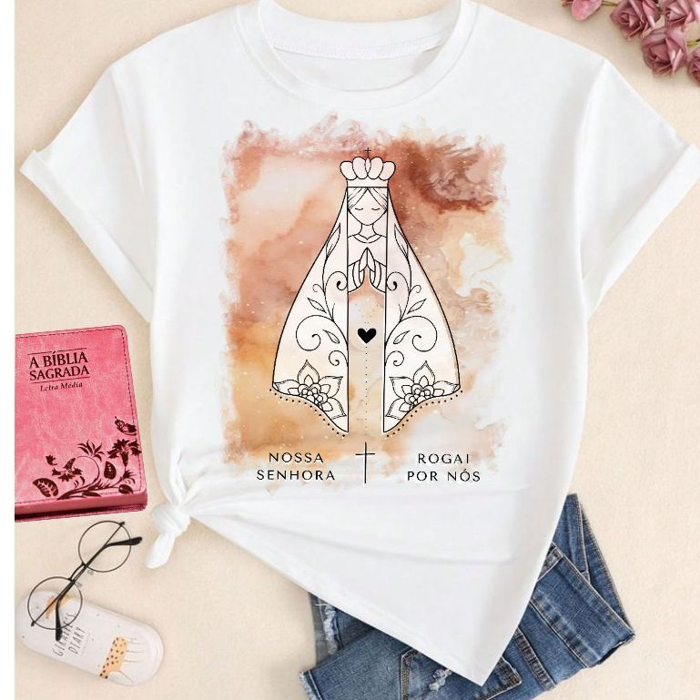 blusa camiseta católica feminina nossa senhora aparecida