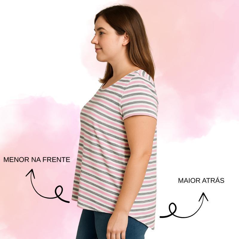 Blusa Camiseta Listrada Moda Verão 2025 Malha - M|G|GG |1416| Pronta Entrega