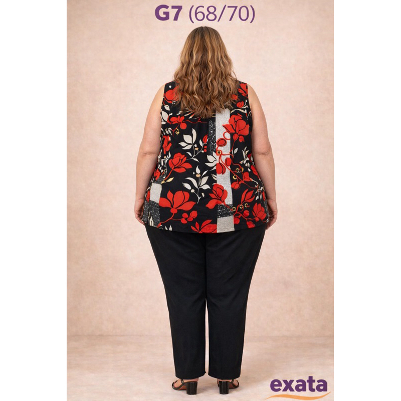 Blusa Regata Plus Size Estampado em Malha Fria – Confortável Blusa REGATA plus size leve, confortável e com ótimo caimento. Confeccionado em malha fria (liganete) com elastano, ajusta ao corpo sem apertar e garante liberdade de movimento para o dia a dia. 👉 Modelo veste G7 (68/70) 👉 Confira as medidas nas imagens antes da compra ⸻ Detalhes do produto: • Blusa Regata feminino • Plus Size • Estampa moderna • Regata • Tecido: Liganete / Malha fria • Possui elastano (estica bem) • Não amassa • Não desbota • Confortável e resistente ⸻ Medidas da peça – Tamanho G7 (68/70) Medidas da peça sem esticar, feitas sobre a mesa) • Busto: 138 cm • Cintura: 141 cm • Quadril: 144 cm • Comprimento: 77 cm As medidas são de circunferência. Pode haver variação de até 2cm para mais ou para menos. O tecido possui elastano, facilitando a adaptação ao corpo. Vantagens da malha fria (liganete): • Toque macio e leve * Não amassa • Não desbota • Alta durabilidade • Ideal para uso diário ⸻ Envio: Pedidos confirmados até 15h são postados no mesmo dia. Compras realizadas em finais de semana ou feriados são enviadas no próximo dia útil. ⸻ Exata Confecções ✔️ Fabricação própria ✔️ Moda plus size pensada no conforto real ✔️ Excelente custo-benefício _____