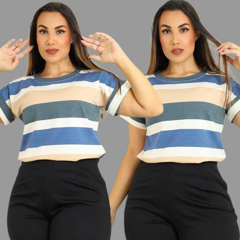Blusa Camiseta T-shirts Listrada Feminina Moda Verão Inverno Estilosa e Moderna Tendencia Manga Curta Japonesa