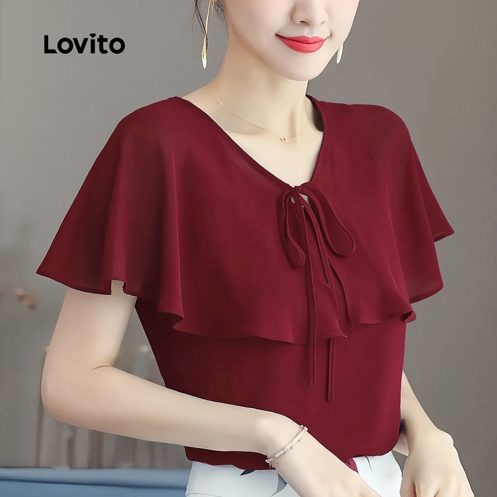 ✅Destaques -❤️Fechamento Com Cadarço -❤️Laço -❤️Macio E Confortável -❤️Primavera E Verão ✅Descrição Estampa: Lisa Estilo: Casual Tamanhos Plus Size: Não Material: Poliéster Composição: 95% Poliéster + 5% Elastano Modelagem: Regular Transparência: Não Elasticidade: Sem Elasticidade Origem: China Continental ✅O Pacote Inclui 1 Blusa ✅Apresentação Da Lovito A Lovito É Uma Marca Emergente Que Acredita No Poder Feminino, Comprometida Em Oferecer Opções De Roupas Modernas E Acessíveis Para Diferentes Estilos, Necessidades E Identidades. Acreditamos Que A Moda Deve Ser Divertida, Libertadora E Fazer Você Se Sentir Bem. Afinal, O Melhor Acessório Para Qualquer Look É A Autoconfiança. ✅Notas De Compra Por Favor, Consulte A Tabela De Tamanhos Antes De Comprar. Pode Haver Uma Pequena Diferença Devido À Medição Manual. Todas As Fotos Dos Produtos Nesta Loja São Fotos Reais. Devido À Iluminação E À Diferença De Tela, Pequenas Variações De Cor E Textura Do Produto São Normais. Siga Nossa Loja E Descubra Novos Itens E As Melhores Ofertas Para Você!! Se Você Tiver Alguma Dúvida Ou Problema, Entre Em Contato Conosco. 😊