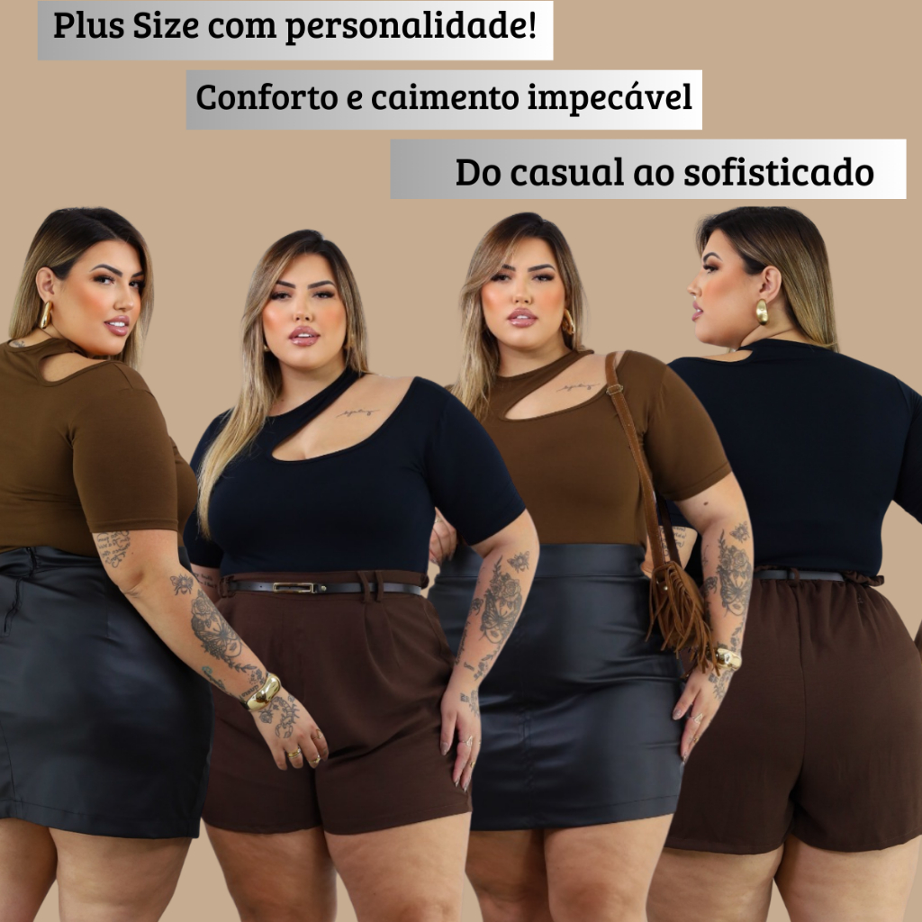Blusa Chocker Feminina Plus Size Gola Assimétrica Moda Casual Manga Curta Elegante