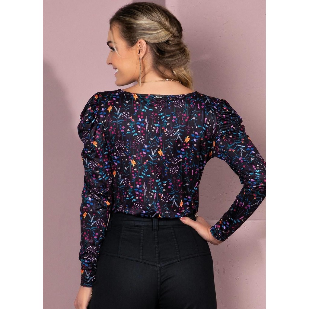 Blusa Com Mangas Bufantes Preto Quintess
