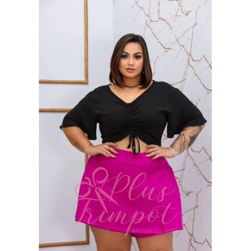 Blusa Cropped Ajustável Plus Size Feminina – Tamanho EXG