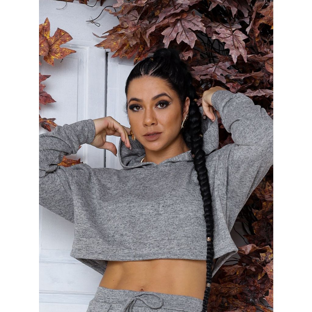 Blusa Cropped Feminina Com Capuz Manga Longa Lãzinha Tendência Frio Inverno