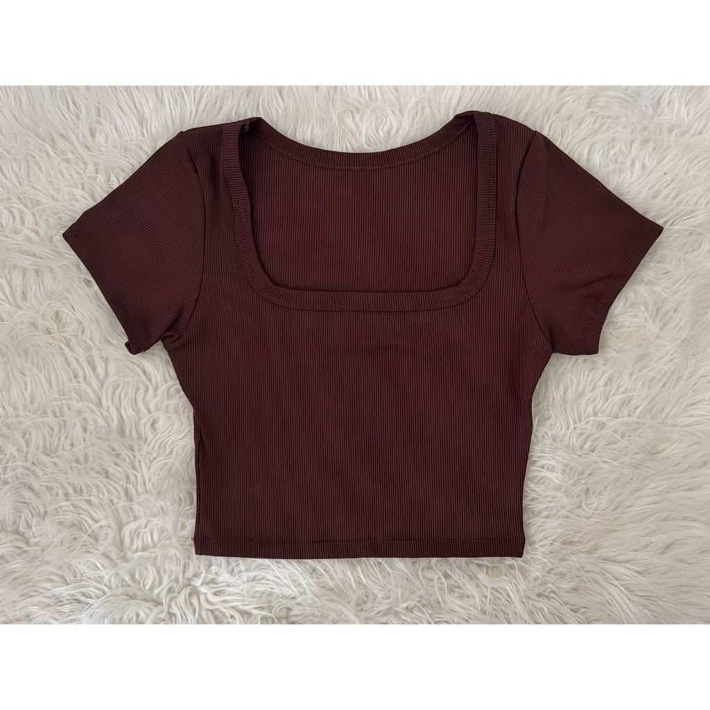 Blusa Cropped Feminino Manga Curta Decote Quadrado