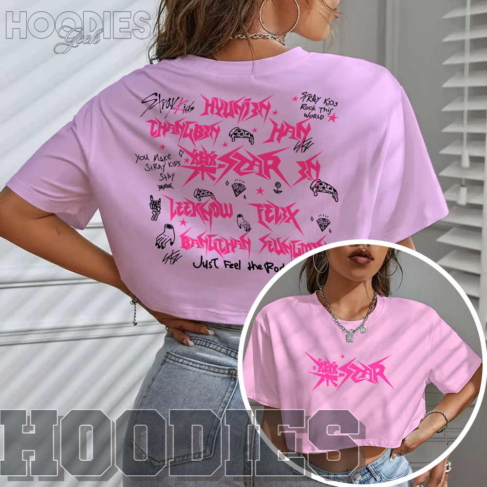 Blusa Cropped Feminino OVERSIZED Frente E Costas Stray Kids Pink Álbuns Music Unissex