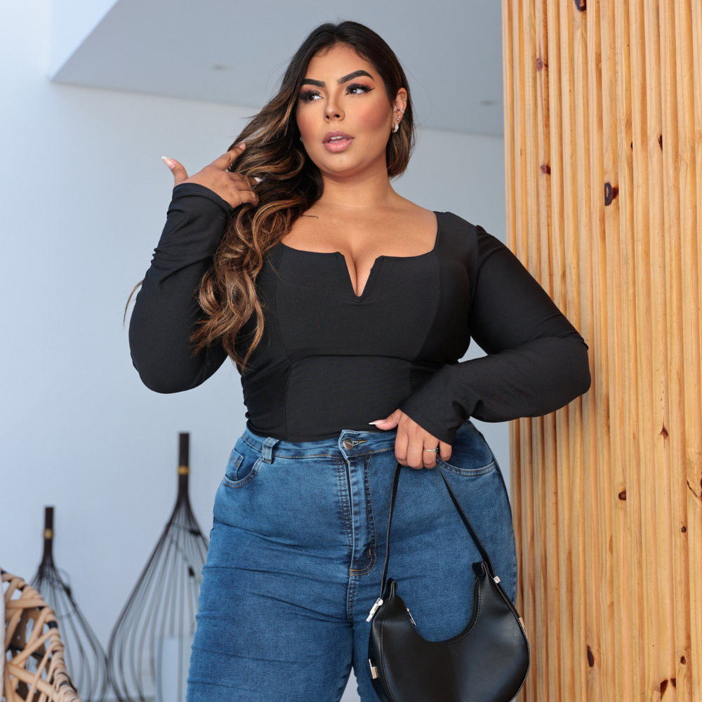 Blusa cropped plus size decote V manga longa Tecido Suplex com toque de poliamida com elasticidade Veste tamanho 46 ao 50 Possui bojo Decote V Medidas da peça sem esticar Comprimento: 50 cm Largura: 82 cm de circunferência Busto: 88 cm de circunferência As cores podem variar de monitor para monitor, parecendo mais claras ou mais escuras.