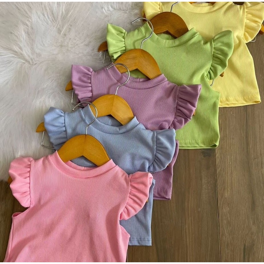 Blusa Cropped Infantil e Juvenil Canelada Ribana Com Manga Frufru (Binf510)