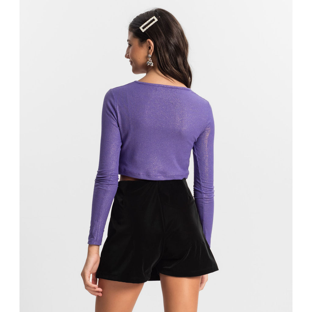 Blusa Cropped Juvenil Manga Longa Minty Roxo