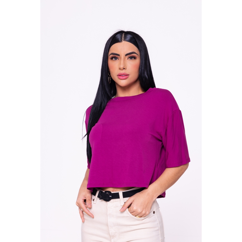 Blusa Cropped Manga Curta Blsinha Basica Canoinha