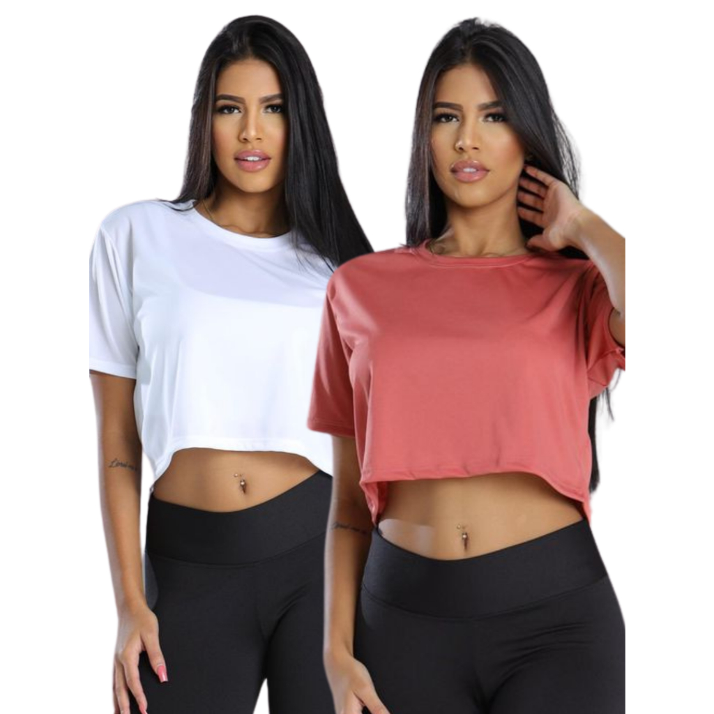 Blusa Cropped Manga curta Dry Feminino Moda Fitness Dia a Dia
