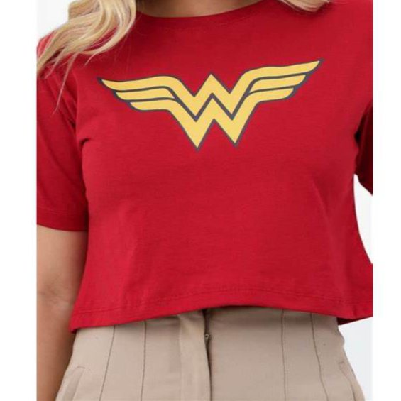 Blusa Croped blogueirinha com escrita Mulher Maravilha Tamanhos: - P (Veste 36 ao 38) Compr - 0,46 cm Larg: 0,82 cm - M (veste 40 ao 42) Compr - 0,46 cm Larg: 0,90 cm - G ( veste 44 ) Compr - 0,46 cm Larg: 0,94 cm ============ TAMANHOS PLUS ====================== - EG (veste 44 ao 46): comp - 0,46cm / larg: 114,0cm - XG (veste 48 ao 50):comp: 0,48cm / larg: 124,0cm - XXG(52 ao 56) comp: 0,52cm / larg:142,0cm - XXL(58 ao 64) comp: 0,55cm / larg: 160,0cm - Tecido Viscolycra. leve, soltinho e estica. A cor pode ter alterações conforme a fotografia. Ficamos a disposição para quaisquer dúvidas antes de fechar a compra. Trabalhamos com carinho, ética e respeito. O retorno é bem vindo. CBA Modas