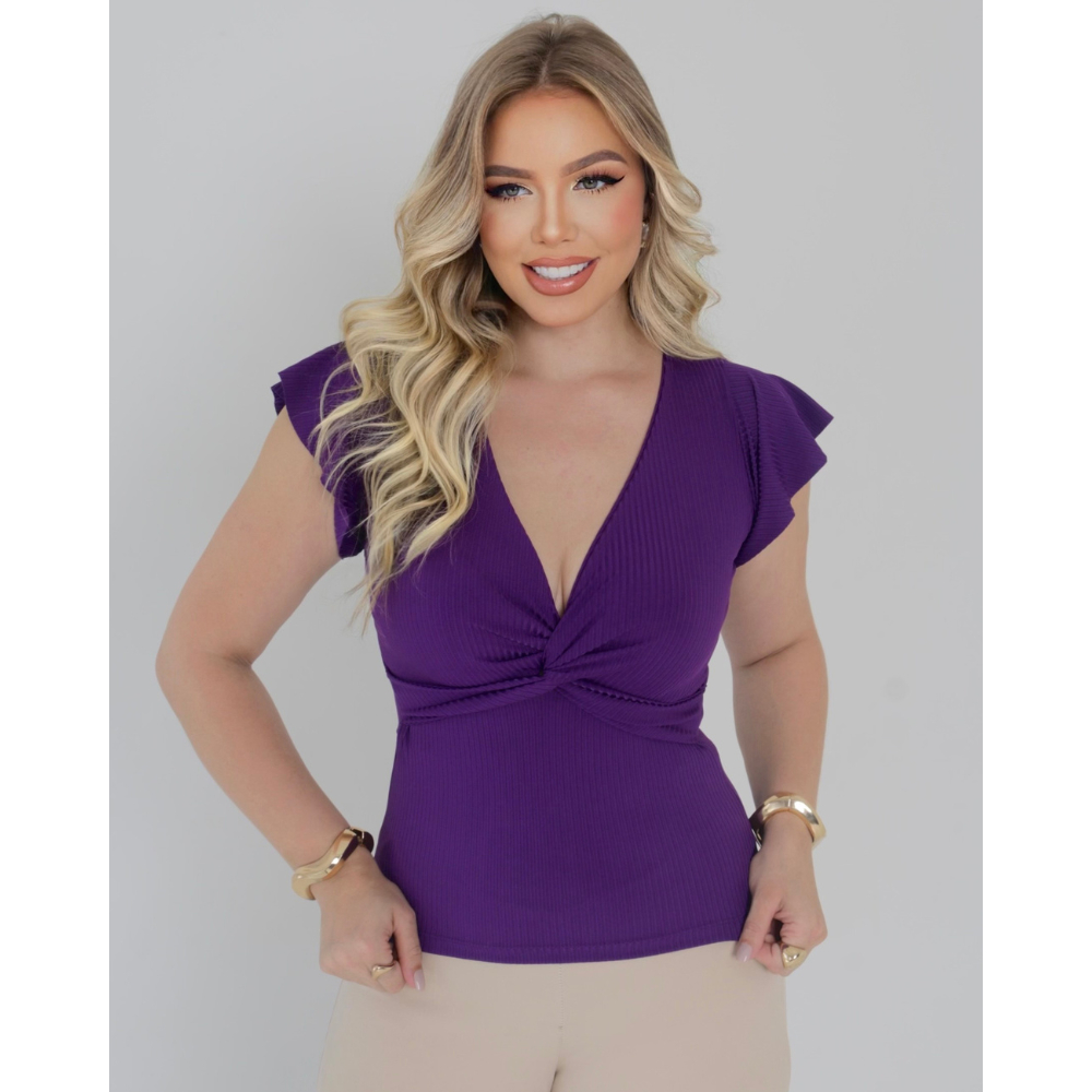 BLUSA CRUZADA COM DECOTE CANELADA MODA FEMININA P M G e GG